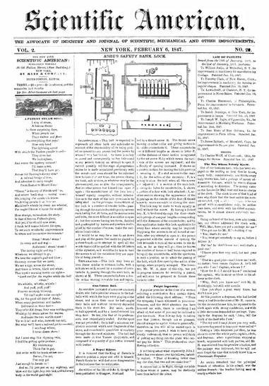 [Scientific American was founded in 1845 and the image is in the public domain, obtained from http://commons.wikimedia.org/wiki/File:Scientific_American_-_Series_1_-_Volume_002_-_Issue_20.pdf%5D