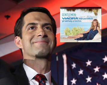 Images from today’s Washington Post story include Senator Tom Cotton and a Viagra ad. Photo credit Danny Johnston, Associated Press