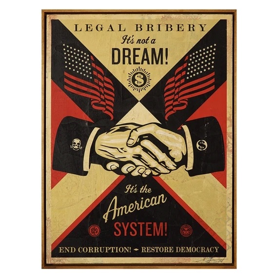 Image is from the Mutual Art website, which featured a 2016 work called “End Corruption” (2016) by noted artist Shepard Fairey