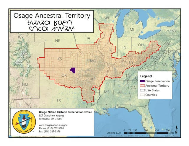 Map of traditional Osage lands and the current reservation. Courtesy of the Osage Nation