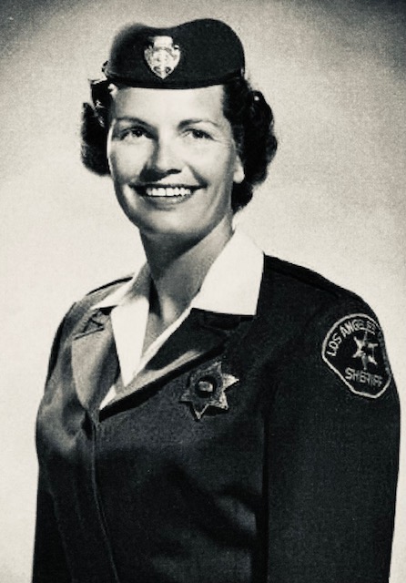 She smiles brightly for the camera in her formal Los Angeles County Deputy Sheriff’s hat and jacket, which is highlighted by a shining badge on her breast pocket.